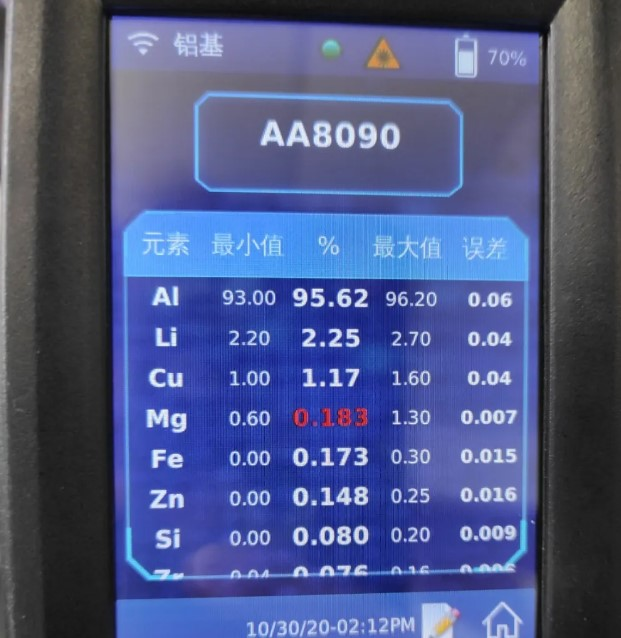 光譜儀,可以對鋁合金中的鋰(Li)元素進行精(jīng)準(zhǔn)的定量分析。